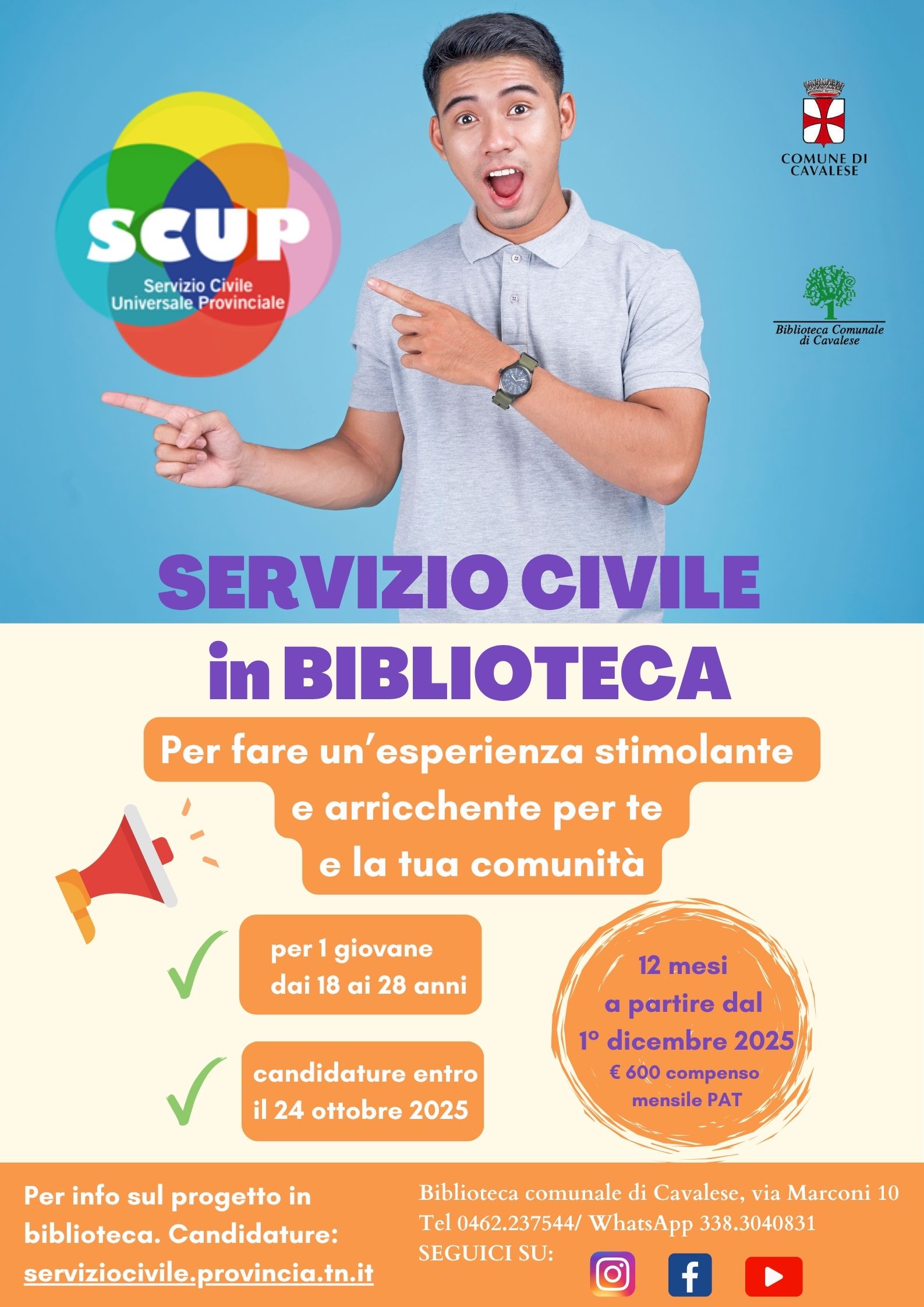 Costi GRATUITO Ingresso gratuito Per info sul progetto: serviziocivile@provincia.tn.itBiblioteca comunale di Cavalese: tel. 0462237544